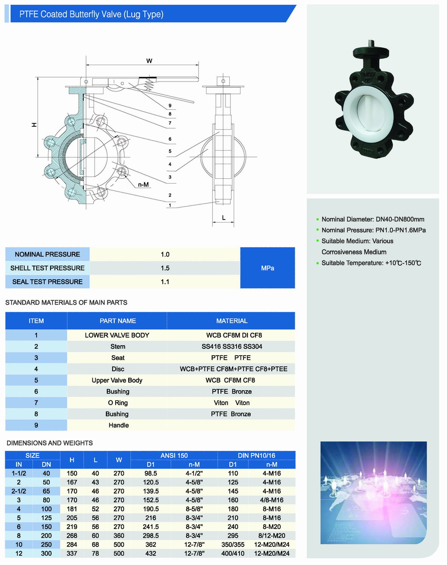 Disc Material: CF8,CF8M,WCB+PTFE,CF8+PTFE,CF8M+PTFE,CF8+PFA,CF8M+PFA,WCB+PFA