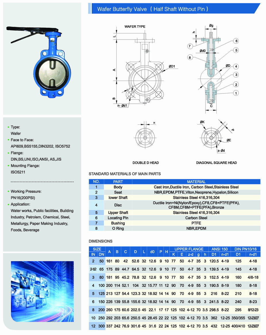 Disc Material: DI+Ni,CF8,CF8M, CF3M,Duplex SS,Al-Bronze,DI+Nylon, DI+PTFE, DI Epoxy etc